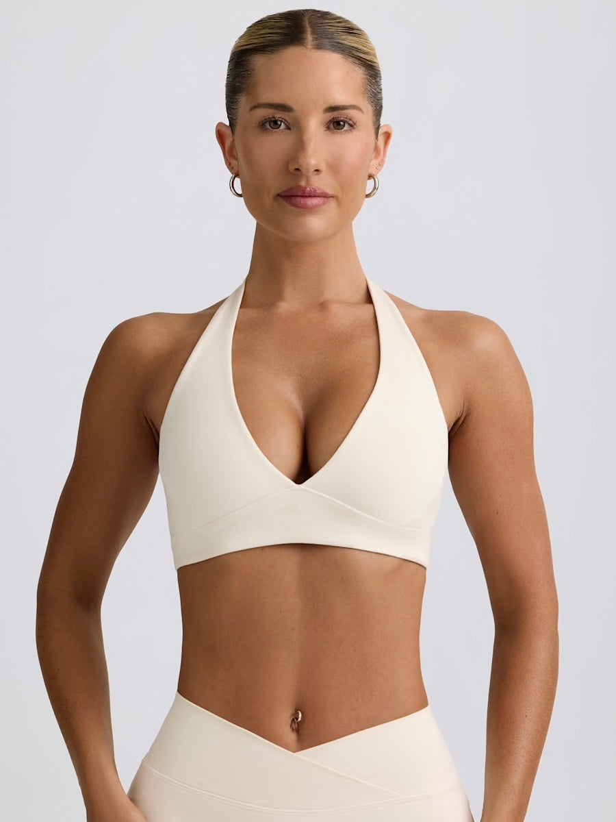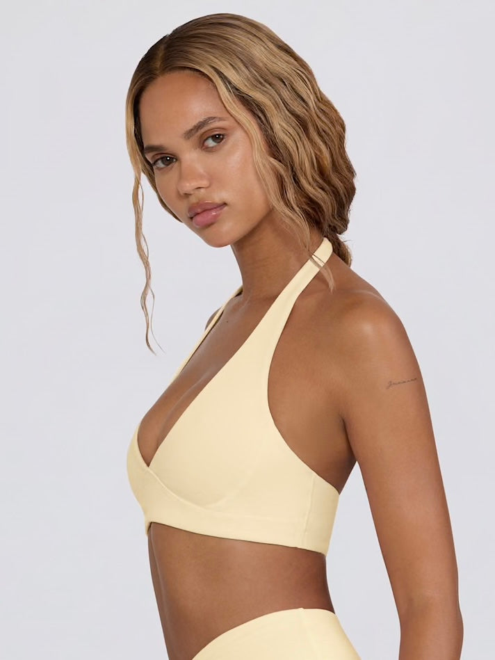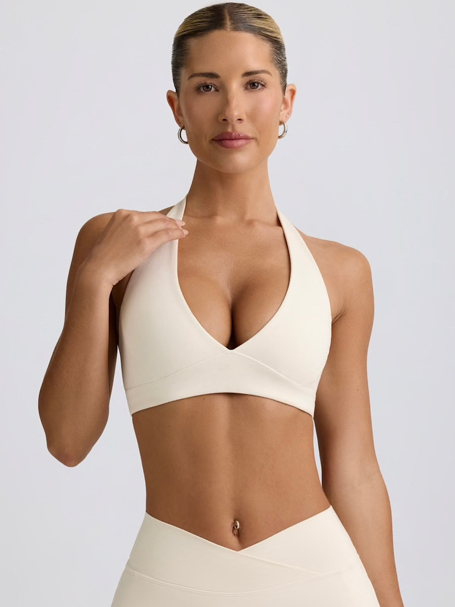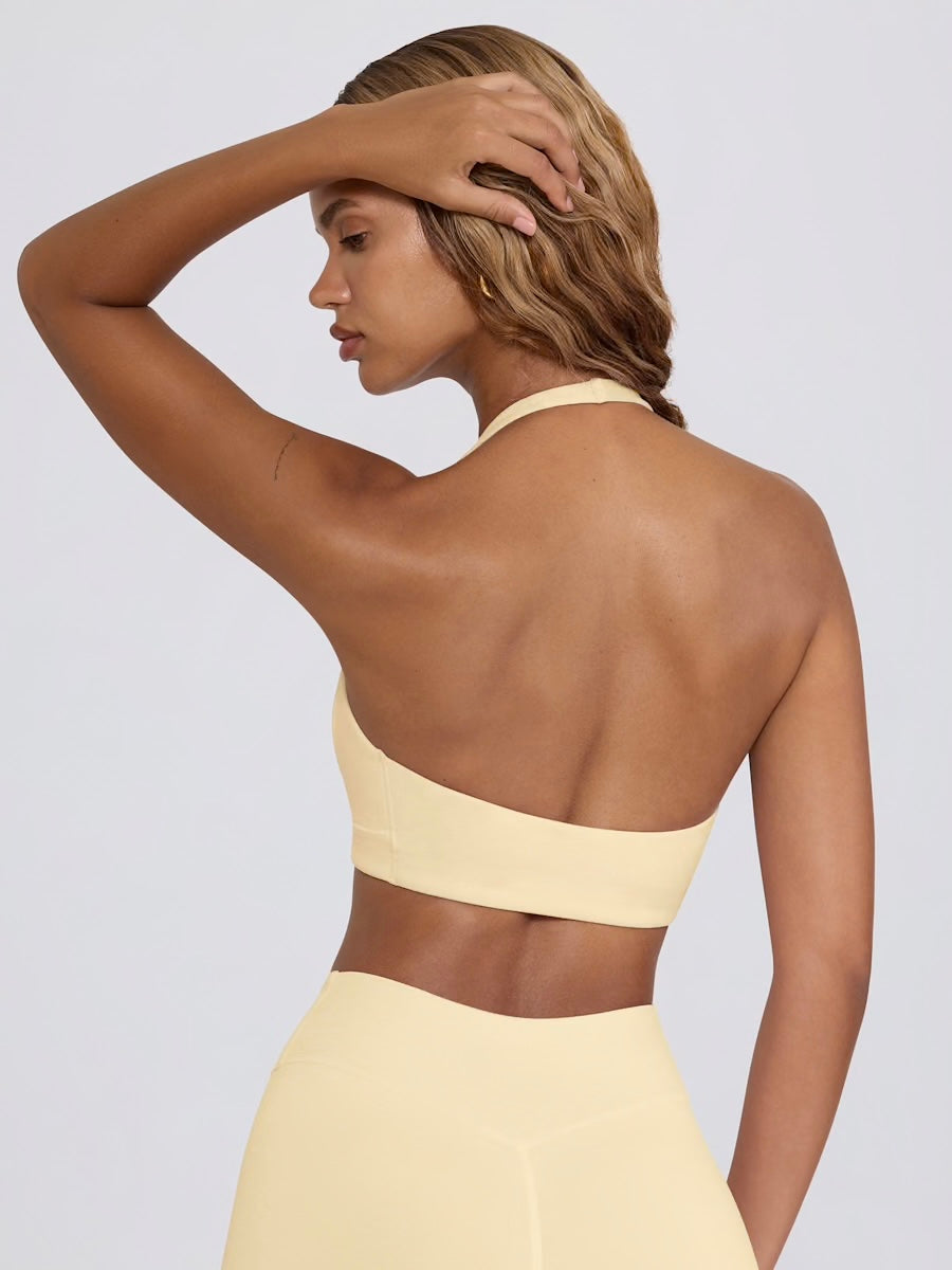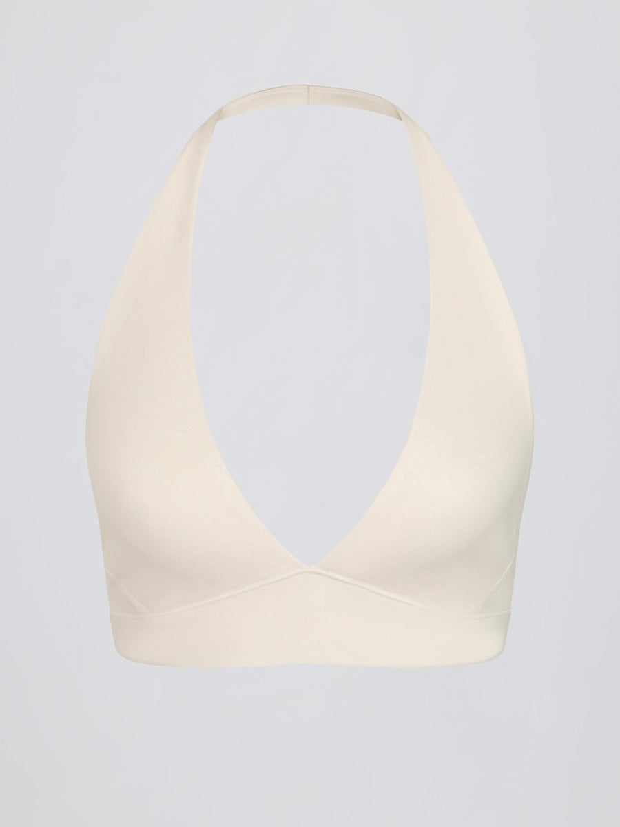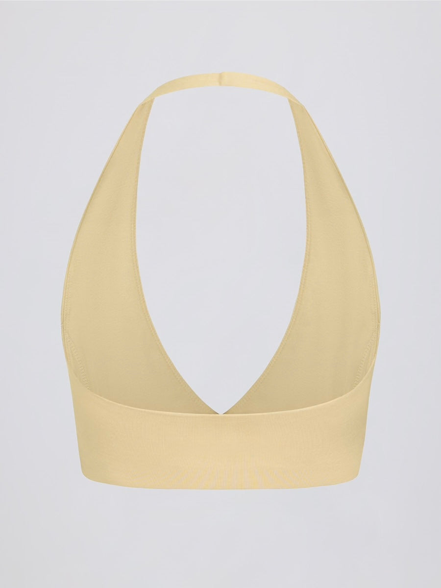 Su diseño halter con espalda descubierta crea una silueta femenina y sofisticada, mientras que las copas removibles te permiten ajustar el nivel de soporte a tu medida. Confeccionado en tela softtouch premium, suave y adaptable al cuerpo.