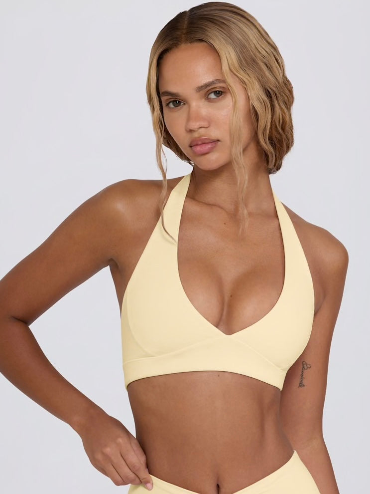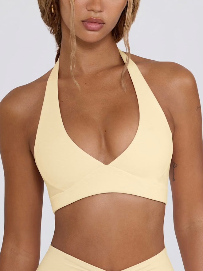 Top de bajo impacto combina un escote en V pronunciado que estiliza con una banda inferior que brinda soporte ligero y cómodo.
